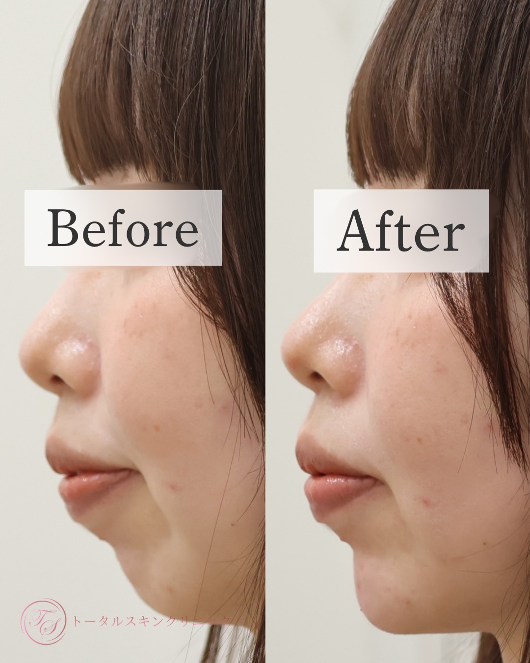 医師コメント顎が無く、横顔に自信が持てないとのことで施術をご希望されました。直後から綺麗なラインが出来て、喜んでいただけました。若干ですが顎下もすっきり。