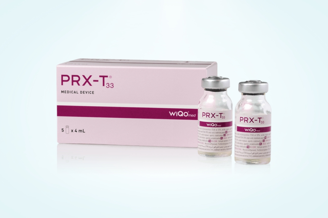 PRX-T33という、TCA(トリクロロ酢酸)、低濃度過酸化水素水、コウジ酸が配合された製剤で行うピーリング施術になります。